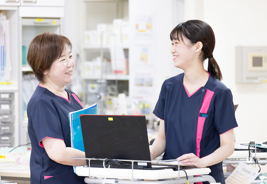 入職してすぐの頃、まだ病棟に慣れていない時期に「体調はどう?」「困っていることはない?」など教育担当専従係長さんが病棟に来て声をかけてくれました。1年目は初めてのことばかりで緊張の連続でしたが、病棟の先輩以外にも相談できる場所があったおかげで、乗り切ることができました。いつも誰かが気にかけてくれていることが安心につながっています。