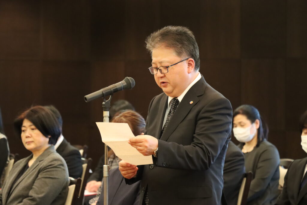 2025年3月10日、永年勤続退職者功労表彰式を開催し、定年退職等を迎える43名の職員が参加しました。宇野理事長は「JA愛知厚生連の良いところは組織風土だと思っています。良い組織風土を築いてきた皆さんに心から感謝しています。」と感謝の言葉を述べられました。受彰者を代表して知多厚生病院の齋藤宏明さんは謝辞の中で「コロナ禍という難局を乗り切ることができたことは、職員一丸となった団結力があったからこそであり、どんな困難をも乗り越えられるすばらしい組織であることを確信しました。」と振り返りました。