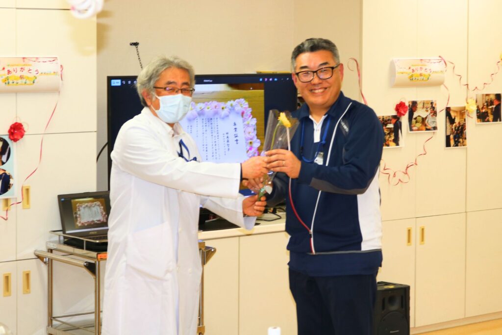 2025年3月31日、海南病院は通所リハビリテーション「きらら」を閉所しました。1998年の開所以来27年にわたり運営を続けてきましたが、地域の通所リハビリテーションが充実したこと、急性期医療を必要とする患者さんの増加に対応するため閉所する運びとなりました。3月19~21日には「卒業式」を開催し、スタッフから利用者さんへ卒業証書を授与するとともにエールを送りました。3月24日には、きららのスタッフに向けて「感謝の集い」を開催し、病院長から感謝の言葉が伝えられました。きららのスタッフは院内に異動し、急性期医療を必要とする患者さんのケアの充実に邁進してまいります。