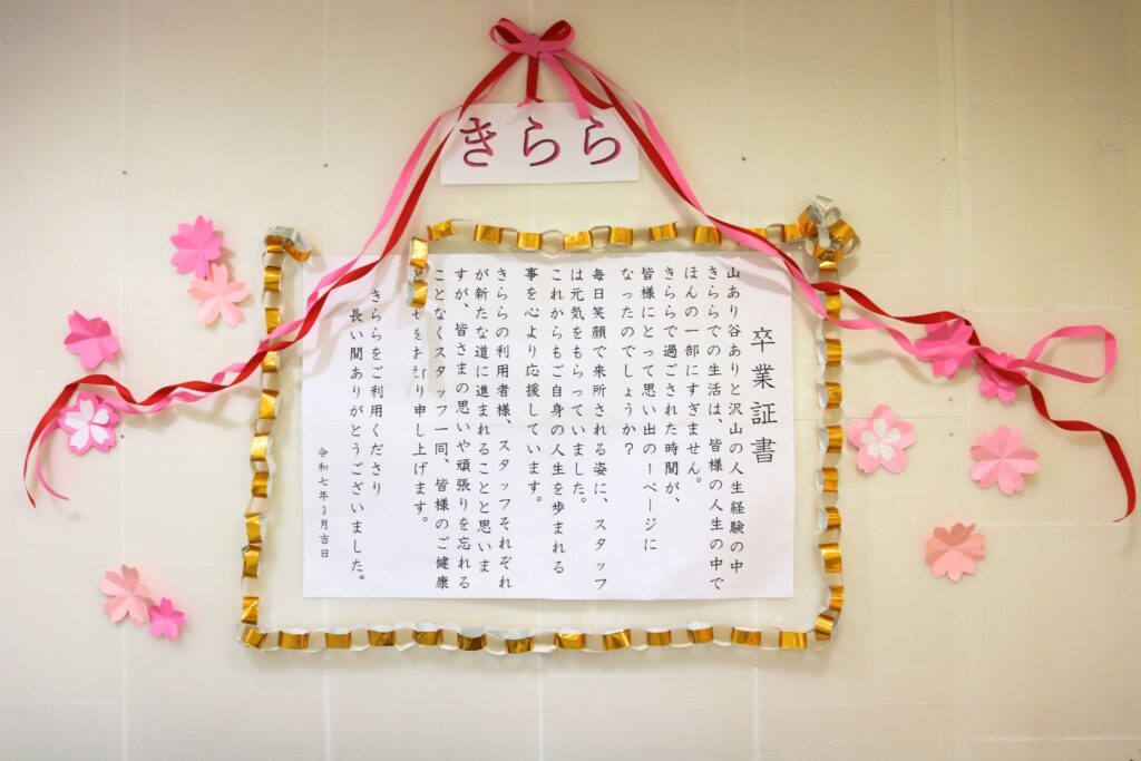 〔卒業式〕職員から利用者さんへエールを送りました。