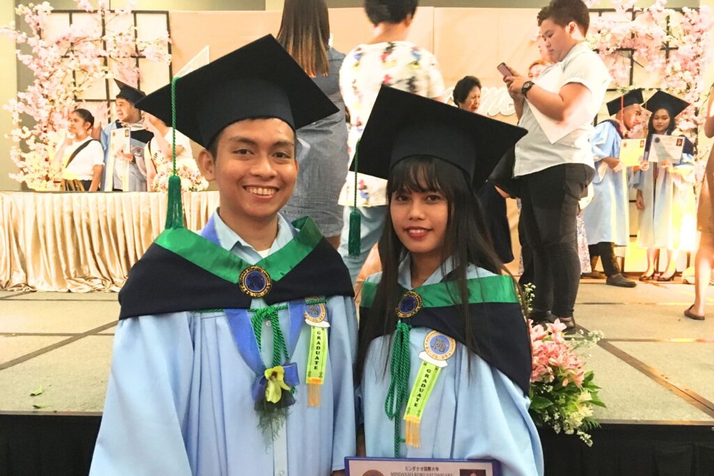 EPA着任前に大学の卒業式に参加するマイケルさん(左)とエデンさん(右)