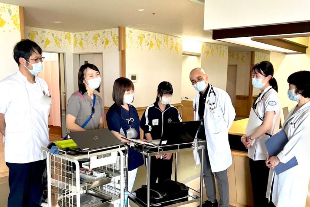 症状緩和チームの仕事を見学する生徒