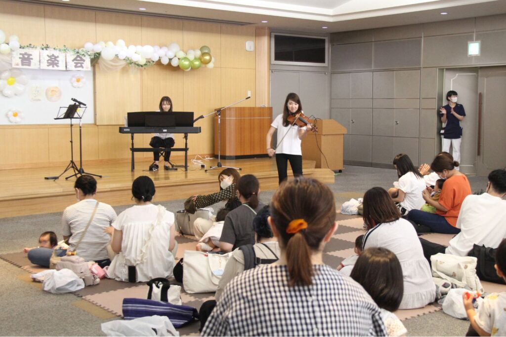 2025年6月30日、安城更生病院は音楽ユニットPalette(パレット)のお二人をお招きして、「地域と病院をつなぐ音楽会」を開催しました。これまで新生児センター内で行ってきましたが、より多くの方に参加いただきたいという想いから、対象を拡大して妊娠中の方やご家族にも参加いただけるようにしました。これまで通り、赤ちゃんと一緒に参加できるよう会場にはマット席を設置しました。当日は、Paletteのお二人によるピアノとヴァイオリンの美しい演奏を、和やかな雰囲気の中で多くの方に楽しんでいただきました。
