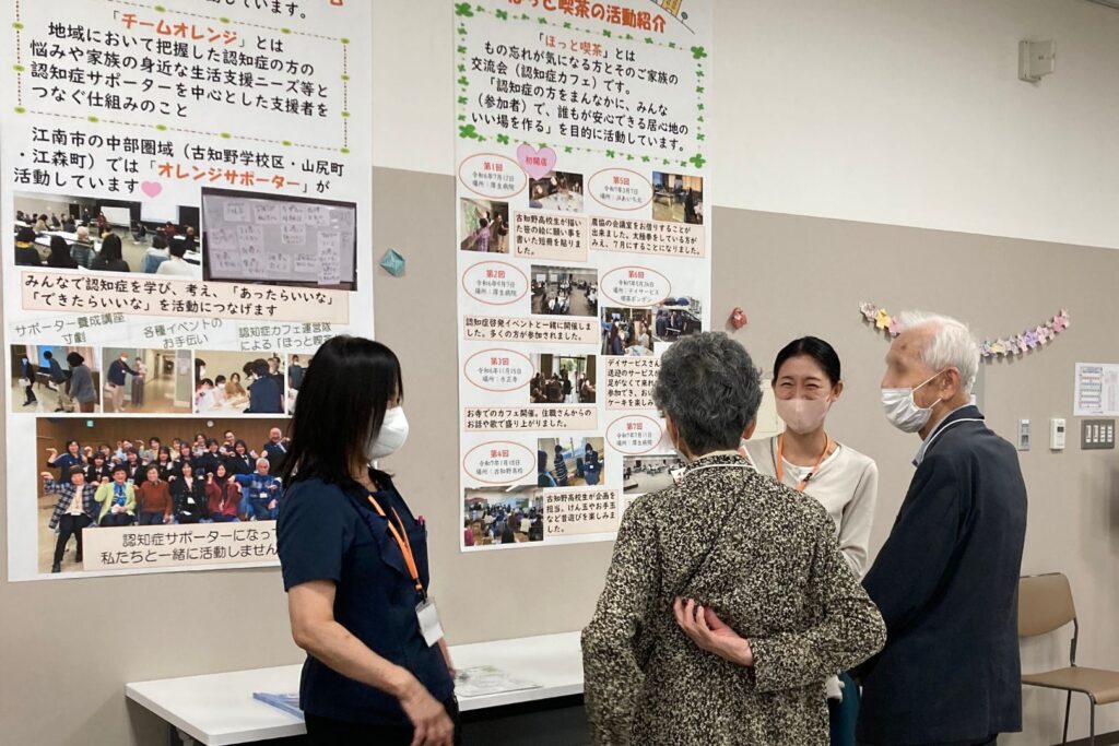 イベントでは、もの忘れ外来の医師と認知症認定看護師、認知症地域支援推進員による「新しい認知症観のお話」をテーマとしたリレートークを行いました。その他にも認知症の方やそのご家族を支援する「オレンジサポーター」や「江南認知症家族会」の紹介展示や、認知症認定看護師や医療ソーシャルワーカーなどの医療専門職との相談会を行いました。中でも、物忘れが気になる方とそのご家族の交流会「ほっと喫茶」は、参加した方からとても好評で、「同じ境遇の人と話ができて良かった。」「また開催してほしい。」などの声が寄せられました。