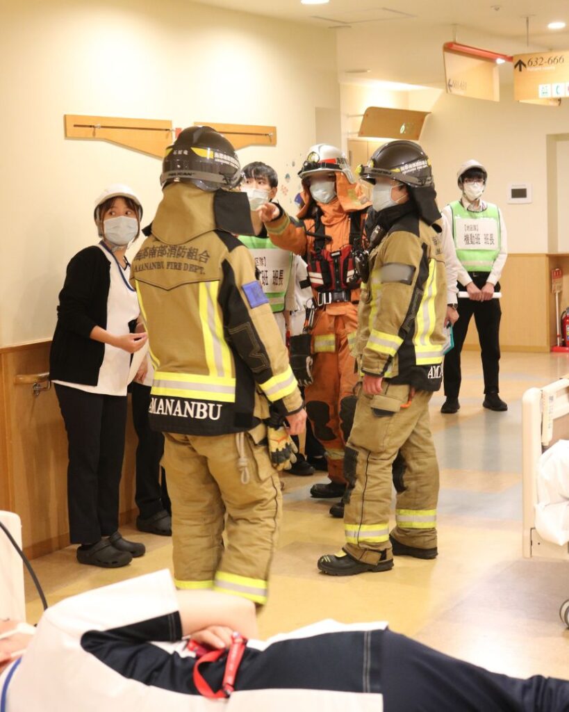2025年10月22日、海南病院は地震による火災を想定した防火・防災訓練を行いました。病院の総合的な防火・防災訓練は、1年に2回以上行うことが消防法によって義務付けられています。