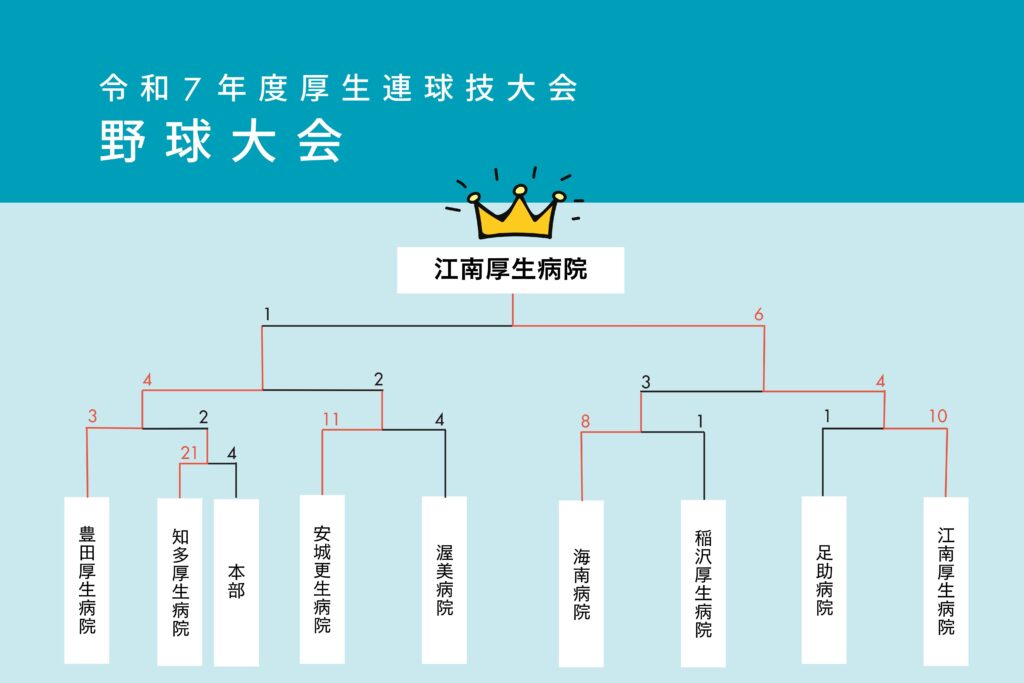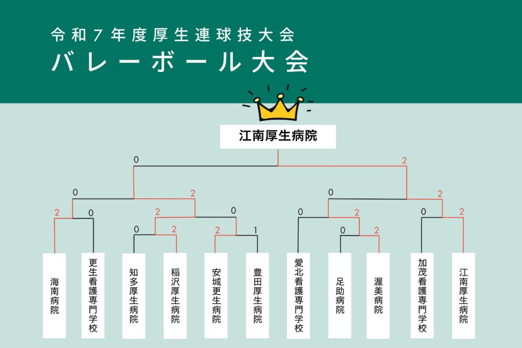 2025年11月3日、厚生連球技大会を開催しました。本大会は、スポーツを通じて職員のコミュニケーションの活性化や健康増進を図ることを目的に毎年開催しています。選手たちは日頃の練習の成果を発揮し、熱戦を繰り広げました。応援席には同僚や家族が駆けつけ、1点が決まるごとに大きな歓声が上がりました。大会の結果は、江南厚生病院のチームワークや総合力が発揮され、バレーボール、野球ともに優勝を果たしました。
