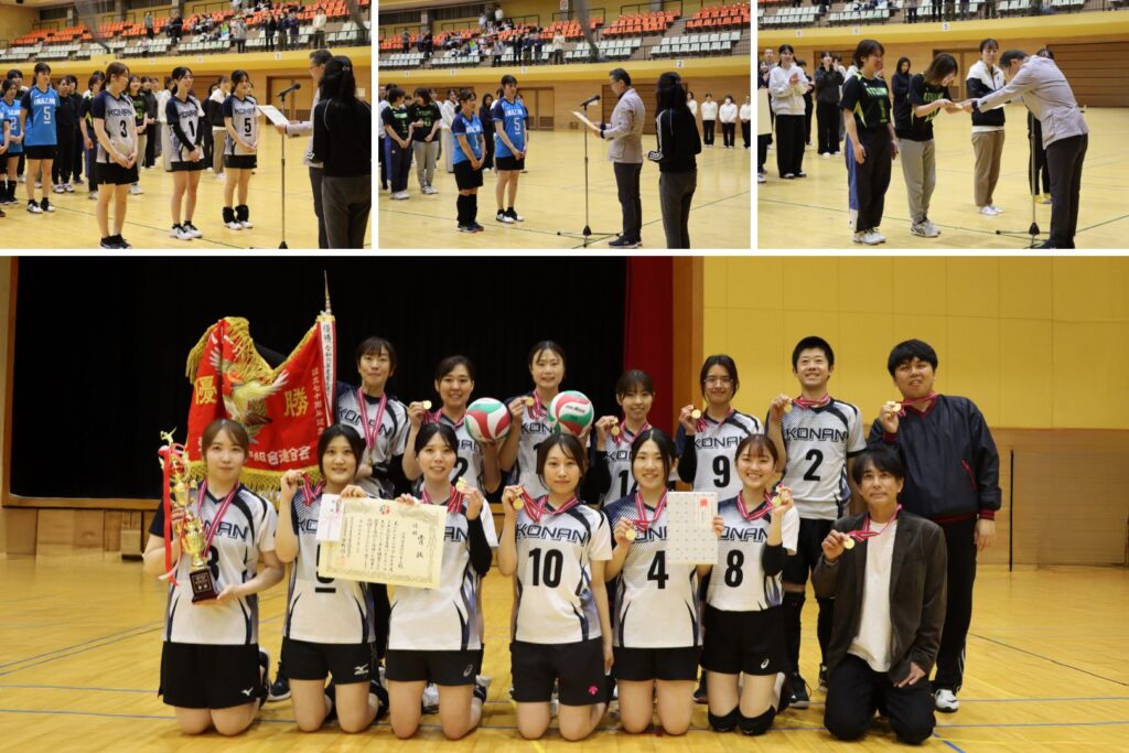 表彰式の様子(上段)、優勝チーム江南厚生病院の集合写真(下段)