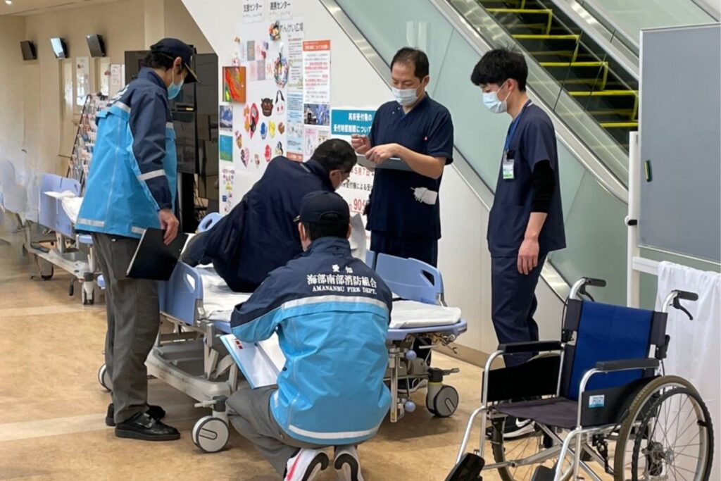 2026年2月7日、海南病院は大規模地震の発生を想定した災害訓練を実施しました。今回の訓練は、海部南部消防本部と愛知黎明高校の協力のもと、愛知県沖を震源とした震度6強の地震が発生したことを想定して行いました。