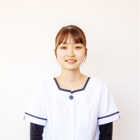 豊橋市の隣にある田原市の渥美病院に勤務しています。私は主に寝たきり患者さんのケアや自立患者さんの退院支援などを行っています。忙しい日々が多いですが、患者さんやご家族からの感謝の一言にとても充実感があり、やりがいにもなっています。学校生活での思い出は、学校祭やスポーツ大会などの行事をみんなで盛り上がったこと。先生方も一緒になって、意外な一面も見えたのも楽しかったです。ここの先生は本当にいい方ばかりで、学生のために親身になってくださいます。先生の言葉にはよく助けられ、学業へのモチベーションを維持できたと思います。看護師になってまだ日が浅いですが、患者さんのご家族にも配慮できる看護師になりたいと思っています。これは私が小学生のころ、祖母が入院してお見舞いにいった時、私たち家族にも気を使ってくださった看護師さんへの憧れからです。ここはみんなの目標に向かって、先生方が私たちのために一生懸命になってくださる学校ですよ。