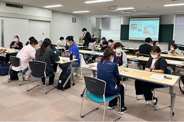 JA愛知厚生連の教育体制を活用し、介護事業を展開しているJAやJA関連社会福祉法人への研修を実施しています。最新の知識や技術を学び、グループ全体で質の高い介護を提供できるよう研鑽を重ねています。