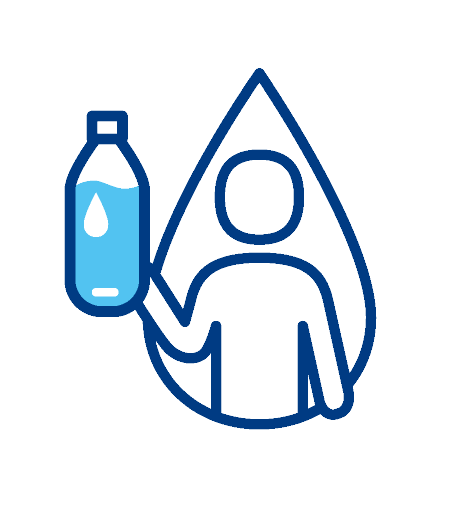 体内の水分は1日2.5ℓ(食事1ℓ、体内で作られる水0.3ℓ、飲み水1.2ℓ)必要です。こまめな水分補給を心がけましょう。飲み物は冷たすぎる飲み物よりも5~15℃くらいの方が吸収・冷却効果大です!