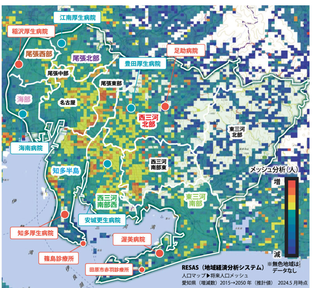 ▲愛知県の将来人口の増減数(推計)は地域によって異なります