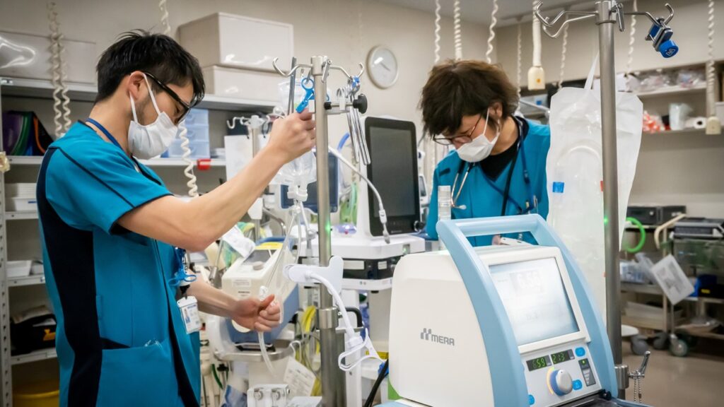沖島:当初からかなり重症であり、人工呼吸器を使用しても血液中の酸素の値が改善されなかったので、その時点でECMOの導入を見据えていました。