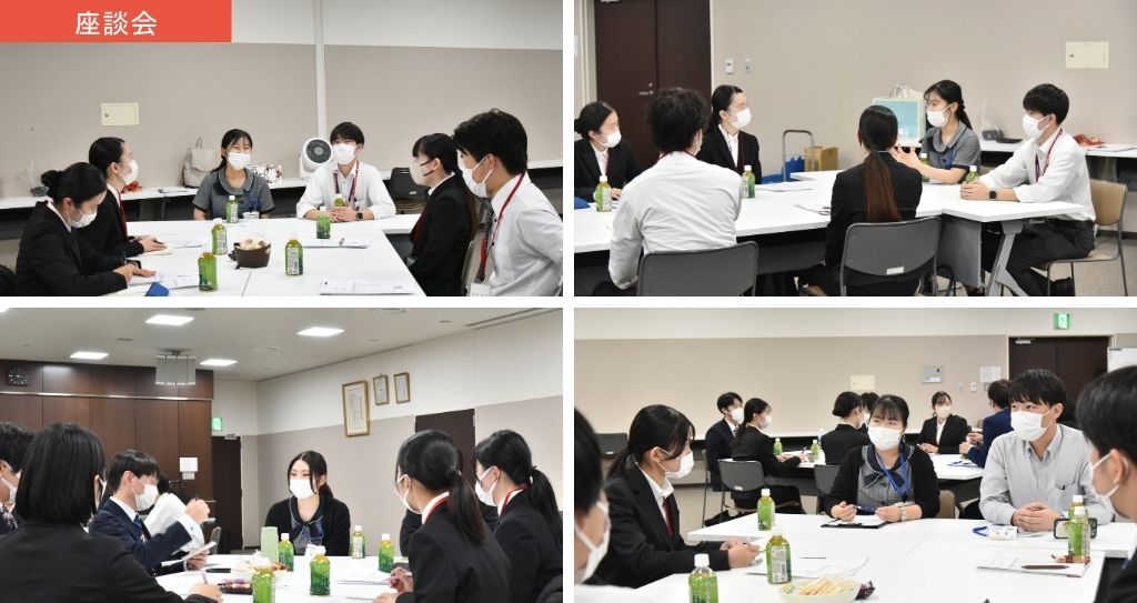 グループに分かれて若手職員と座談会を行いました。院内見学後の緊張がほぐれた和やかな雰囲気の中で業務内容や就職活動に関するさまざま話題で盛り上がりました。