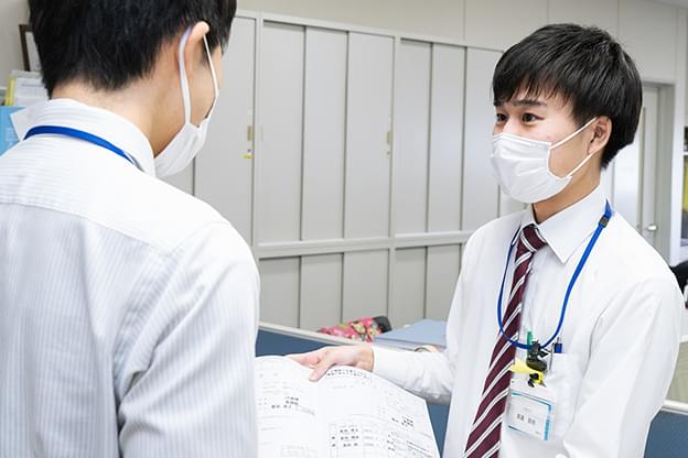 医事課では、患者さんの診療に関する事務手続き全般を行います。基本的な業務として外来・入院の受付、新規患者の電子カルテ登録、医療費の請求、会計などがあります。医療費の請求では、診療報酬で定められたルールに照らし合わせて患者さんへの診療行為を点数化し、レセプト(診療報酬明細書)を作成します。これらの仕事ができるようになったら、診療報酬改定の分析や経営管理に必要となるデータの作成なども行います。診療データを分析し、医師に診療内容の改善を提案するなど、経営管理にも貢献しています。