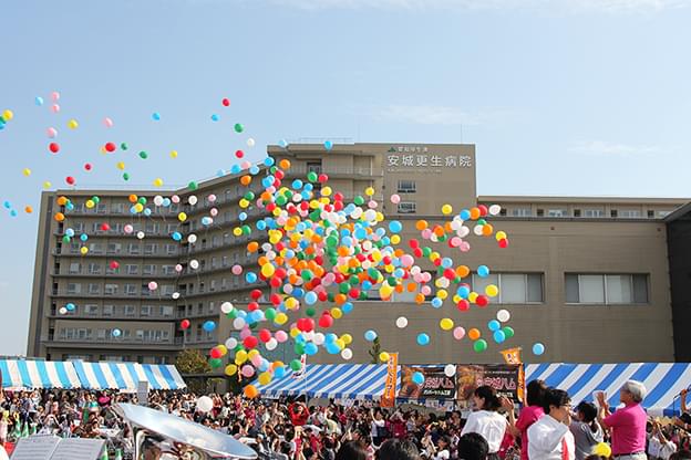 地域の人たちに病院のことを広く知ってもらうために病院祭を開催しています。未来を担う子どもたちが医療に興味を持ち、「医療に関わる仕事がしたい!」と思ってもらえるように院内探検ツアーや手術体験なども企画しています。病院中心の企画以外にも、消防と協力して災害について考えるブースや、JAとのコラボ企画など、地域の関係機関と一緒になって病院祭を作りあげます。事務職員はイベント企画とともに院内の様々な部署や地域の関係者との調整を一手に担い、病院祭運営の中心的な役割を果たしています。