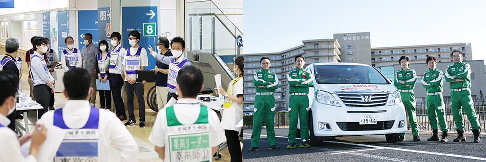 愛知県の要請を受け、2021年7月から新型コロナワクチン大規模集団接種会場を運営しました。安城更生病院を会場とし、8病院と本部から職員が集まり、「オール厚生連」で取り組み、のべ59,183回の接種を行いました。事務職員は、愛知県・市町村と調整を繰り返しながら運用を構築し、接種当日は受付や誘導などの会場運営を担いました。地域の人たちが一日も早くワクチンを接種できるように、職員一丸となって取り組みました。